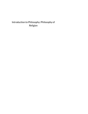 INTRODUCTION TO PHILOSOPHY: PHILOSOPHY OF RELIGION
