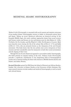 Medieval Arabic Historiography is concerned with social contexts and narrative structures of pre-modern Islamic historiography written in Arabic in seventh and thirteenth-century Syria and Eygpt. Taking up recent theoretical reflections on historical writing in the European Middle Ages, this extraordinary study combines approaches drawn from social sciences and literary studies, with a particular focus on two well-known texts: Abu Shama’s The Book of the Two Gardens, and Ibn Wasil’s The Dissipater of Anxieties. These texts describe events during the life of the sultans Nur-al-Din and Salah al-Din, who are primarily known in modern times as the champions of the anti-Crusade movement. Hirschler shows that these two authors were active interpreters of their society and has considerable room for manoeuvre in both their social environment and the shaping of their texts. Through the use of a fresh and original theoretical approach to pre-modern Arabic historiography, Hirschler presents a new understanding of these texts which have before been relatively neglected, thus providing a significant contribution to the burgeoning field of historiographical studies.